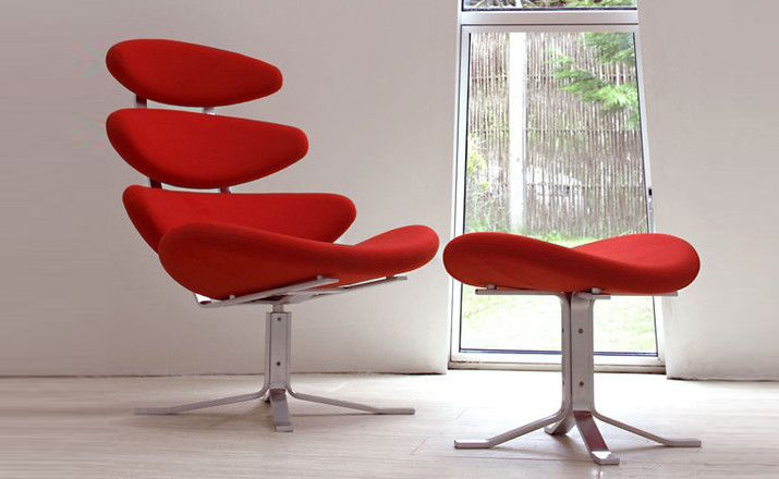 Poul M. Volther 于1964年的设计的王冠躺椅家具系列,是Poul M. Volther最知名的现代家具设计作品,此系列包括Corona Lounger Chair(王冠躺椅)、Corona Lounger Ottoman (王冠休闲脚踏)及其组合Corona Lounger Chair and Ottoman(王冠躺椅&脚踏)。历经40余年的今天,其作品在纷繁现代家具设计中仍占有一席之地。椅子充满了雕塑感,斯堪德维亚风格的简洁外形和舒适的坐感都是这张椅子成为创世之作的原因,四个椭圆形组成一张独特的椅子,无论摆放在哪,都令人过目不忘。此系列家具采用高强度钢材制作,表面电镀处理,外面为真皮或布艺制作,可360度旋转,不可后仰。适用范围广,酒店、会所、高档餐厅、夜总会、别墅等。