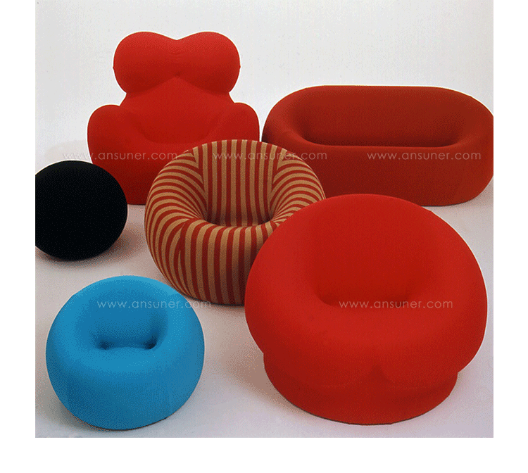 自从Up系列1969年面世以来,就成为一款最杰出的设计。此系列七款大小不一的坐具给人们以非凡的视觉冲击,让它们显得与众不同。Up5是此系列中最著名的一款,一个像女人的坐具与一个球形的脚凳连在一起,似乎要让女人屈服。其由意大利著名设计师Gaetano pesce设计,外形模仿女性性感的曲线轮廓,而且为了让使用者坐在上面能感受到超级舒服的感觉,特意将性感曲线的各个部位都加以放大。目前有UP5与UP6两种型号,适用不同体型的人。