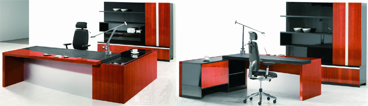 ※ 上图为大班台不同角度的展示,在简洁的风格线条中,镶嵌着流畅的弧线,展现有条不紊的细腻与沉稳之外,还有亲和的领导魅力;把自然的质感展现再次,柚木、胡桃木的实木工艺表现,让自然的概念在您的雅域表现出来;现代办公空间中的自然色彩,为您的办公室写上自信与自在!
