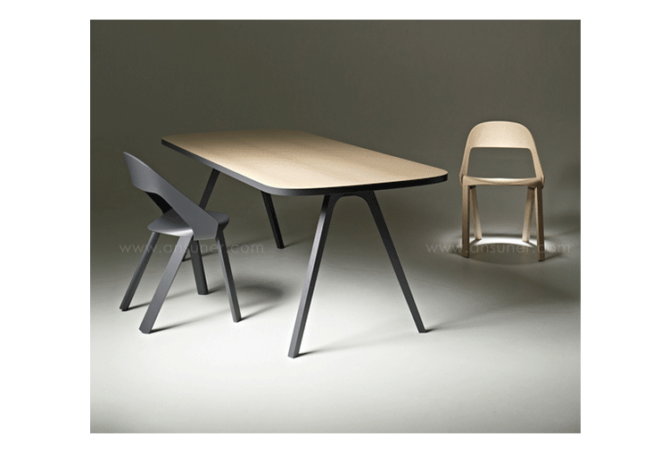 The chair’s design is simple and clear. The seat is bent down on four sides and holds the legs and the back on both outer sides.Molded plywood shapes the aesthetics of the chair.Pressing plywood into shape is an old technique that has seen a rapid development with the introduction of CNC milling technology in recent years.Complex molded parts can be inserted in milling tools and pressed directly with the plywood. This has opened new paths for shape and design.As with the chair Wogg 50,whose structural center is the core pressed in below the seat shell.