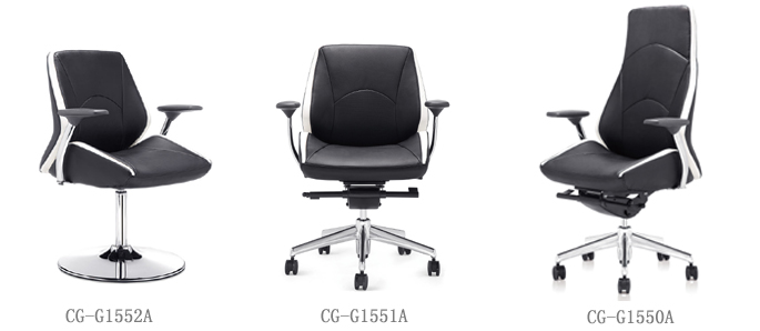 A:椅身采用钢管成型,座、背PU定型棉,西皮配白边,用铝合金脚,PU大脚轮,100#行程阿的高汔杆。