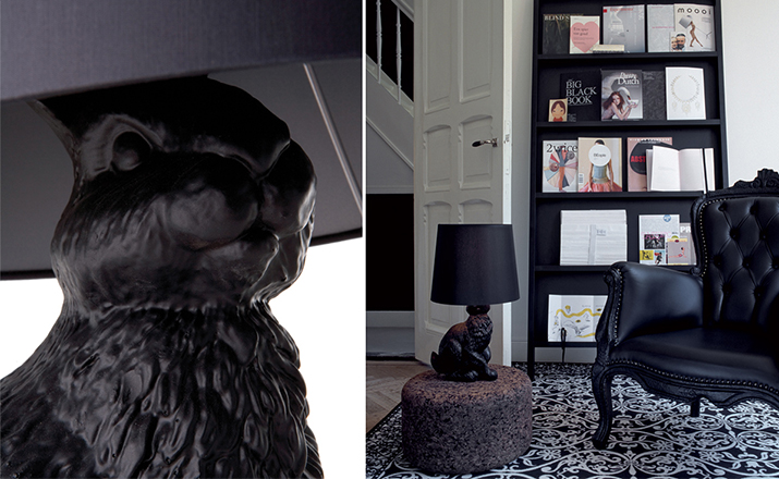 "The Rabbit Lamp has been designed by the Design Team Front Design for the Netherlands manufacturer Moooi. The table lamp is part of the three-part collection of furniture and lamps that include the real-size Horse Lamp and the Pig Table besides the Rabbit Lamp.The rabbit-body consists of fibre glass. The lamp’s shade is made out of a PVC/viscose-material that has been tensed on a metal frame and closed to its top."