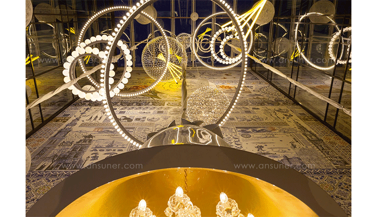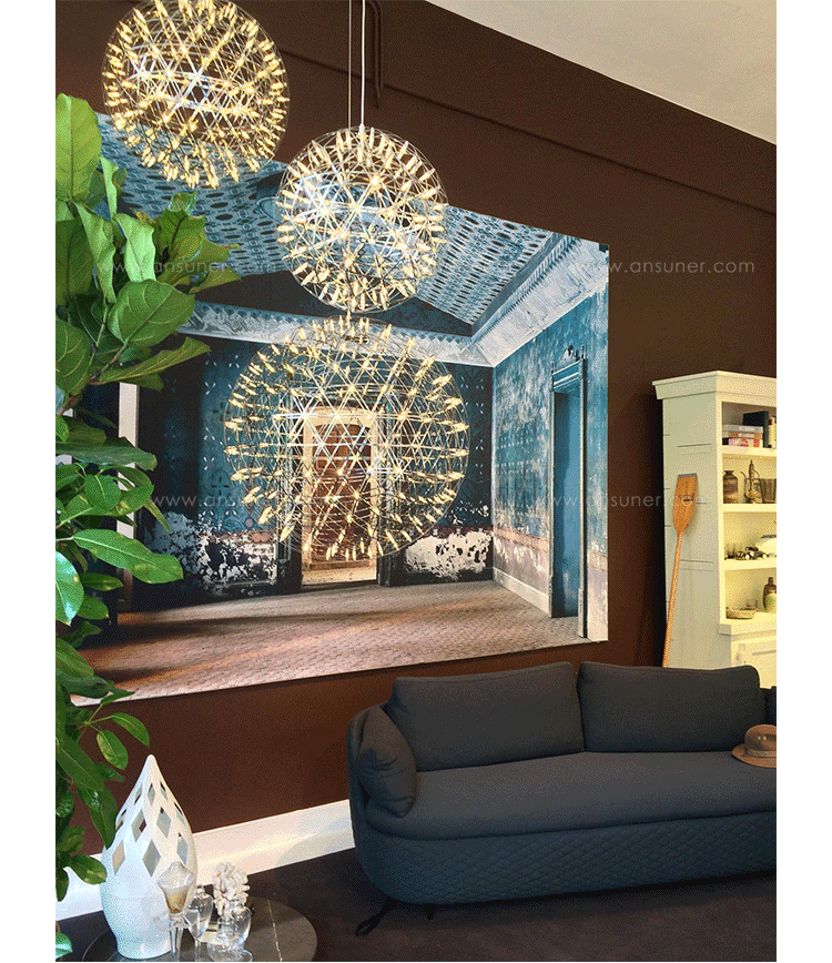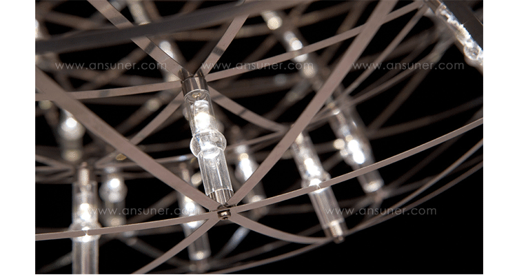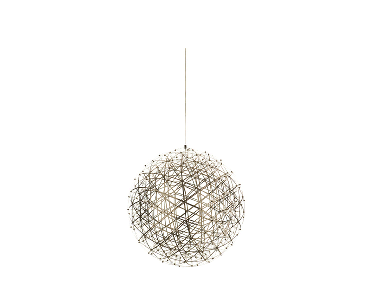 "The beauty of light was redefined with the Raimond pendant lamp basing on pure mathematics. Finally it is possible to watch the universe and enjoy the starlight while the night sky is cloudy. The Raimond pendant lamp enables this with its numerous LED’s that seem to float in space like real stars.Raimond consists of complex stainless steel grid nettings. The single trams from the netting are (similar to the planet orbits) arranged around an imaginary point.The Raimond Pendant Lamp is also available in different sizes and each one of them in a dimmable and non-dimmable edition."