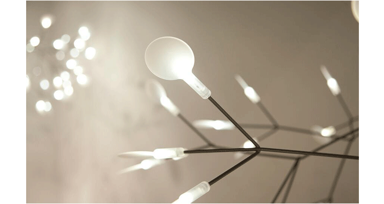 The decorative LED lamp inspired by the Heracleum Plant now comes in two sizes. Theleaves ramify from a branch creating a very technixal,natural structure,By using the technique of coating conductive layers.Adesign not possible with normal wires.