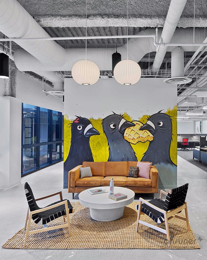音乐在Vans拥有深厚的根基,这里的“果酱&游戏室”配有很多乐器,允许员工随时来一段即兴表演或展开歌喉爆吼。Vans对艺术的痴迷同样令人难以置信,墙面上到处是经 典的滑板艺术图形、壁画和街头涂鸦,带来与众不同的潮流艺术体验。